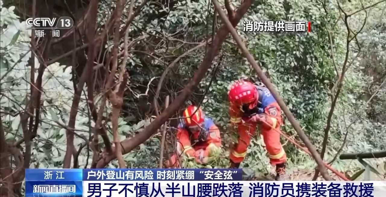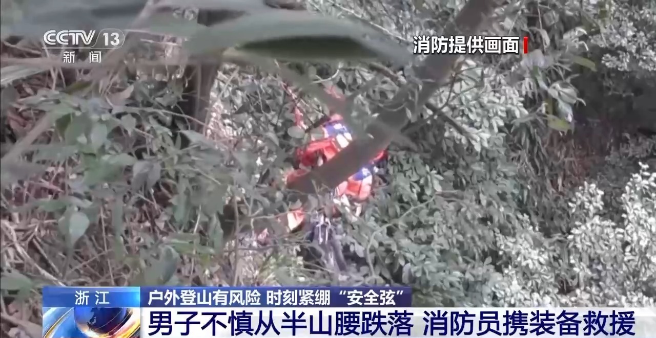 类似的情况也发生在浙江。前不久,在浙江金华武义县一景区,几名年轻小伙相约爬山,在爬山过程中,其中一人不慎从半山腰跌落,身上多处受伤。因受伤人员所处位置在半山腰处的陡崖,车辆无法通行,消防员携带救援装备徒步前往被困人员所在位置。