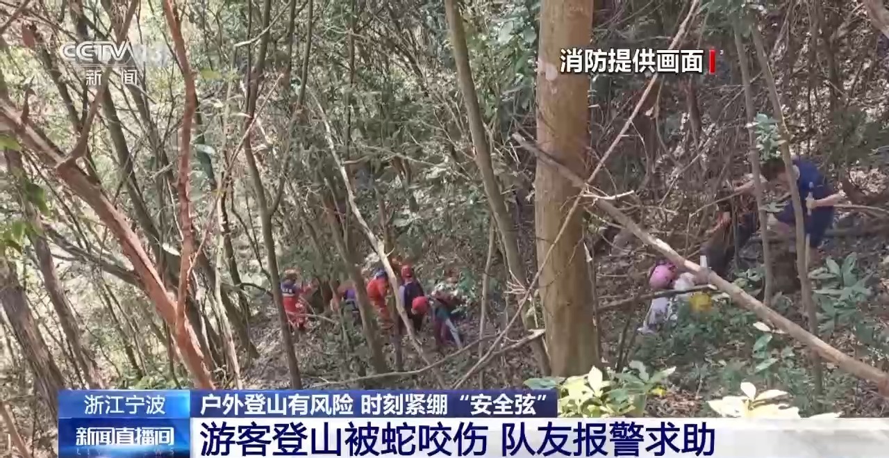 近日,在浙江宁波奉化一景区的山上,6名游客结伴登山时也突遇险情,其中一人被蛇咬伤右腿,肢体肿胀无法行动。消防员到场后了解到,伤者是被一条蝮蛇咬伤。同行人员中的医务工作者立即用衣物帮其绑扎伤口减缓毒素扩散。