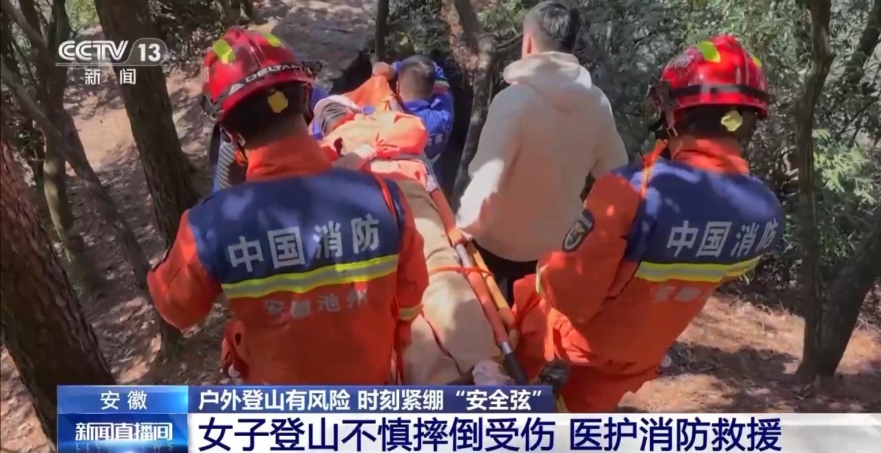 3月17日,一名女子和同伴在安徽池州九华山景区登山游玩时不慎摔倒,造成身体多处受伤。