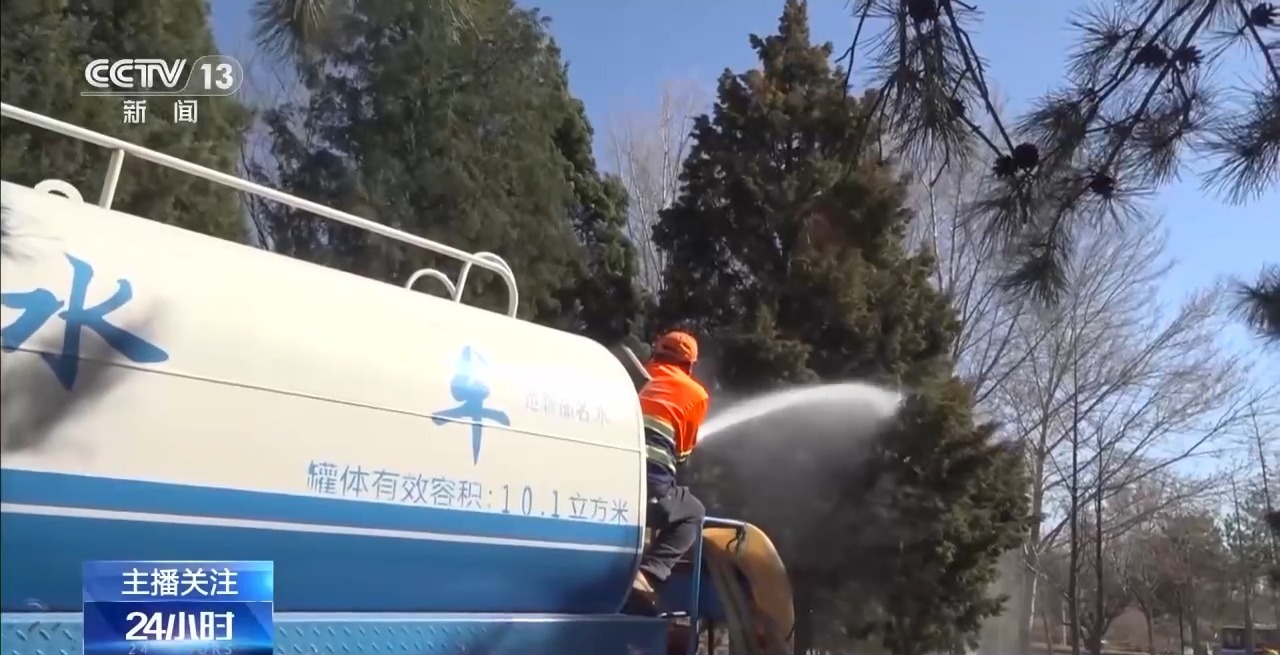 天坛公园目前正在开展对松柏类树木开花情况的实时监测,视花粉爆发情况对柏树进行白天2至3次和夜间1次喷水作业,以及不间断的地面清洁。