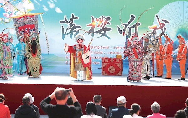 昨日下午,由市委宣传部、市文化和旅游局、市总工会主办,市艺术剧院和市群众艺术馆承办的“落樱听戏”系列展演活动在十堰奥体中心广场拉开序幕,郧剧、豫剧等传统戏曲力作轮番上演,堪称一场汇聚经典、赓续传承的视听盛宴。此次戏曲展演持续至4月6日,每天下午在十堰奥体中心广场举行,市民可前往观看。图/记者 张启国
