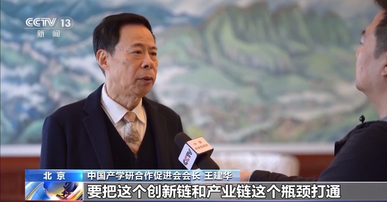 中国产学研合作促进会会长 王建华:要把这个创新链和产业链瓶颈打通,就是要进行无缝对接,包括我们现在有企业、高校、科研院所建立的产学研合作联合实验室,都是从点线面全方位的来推进科技创新和产业创新的深度融合。