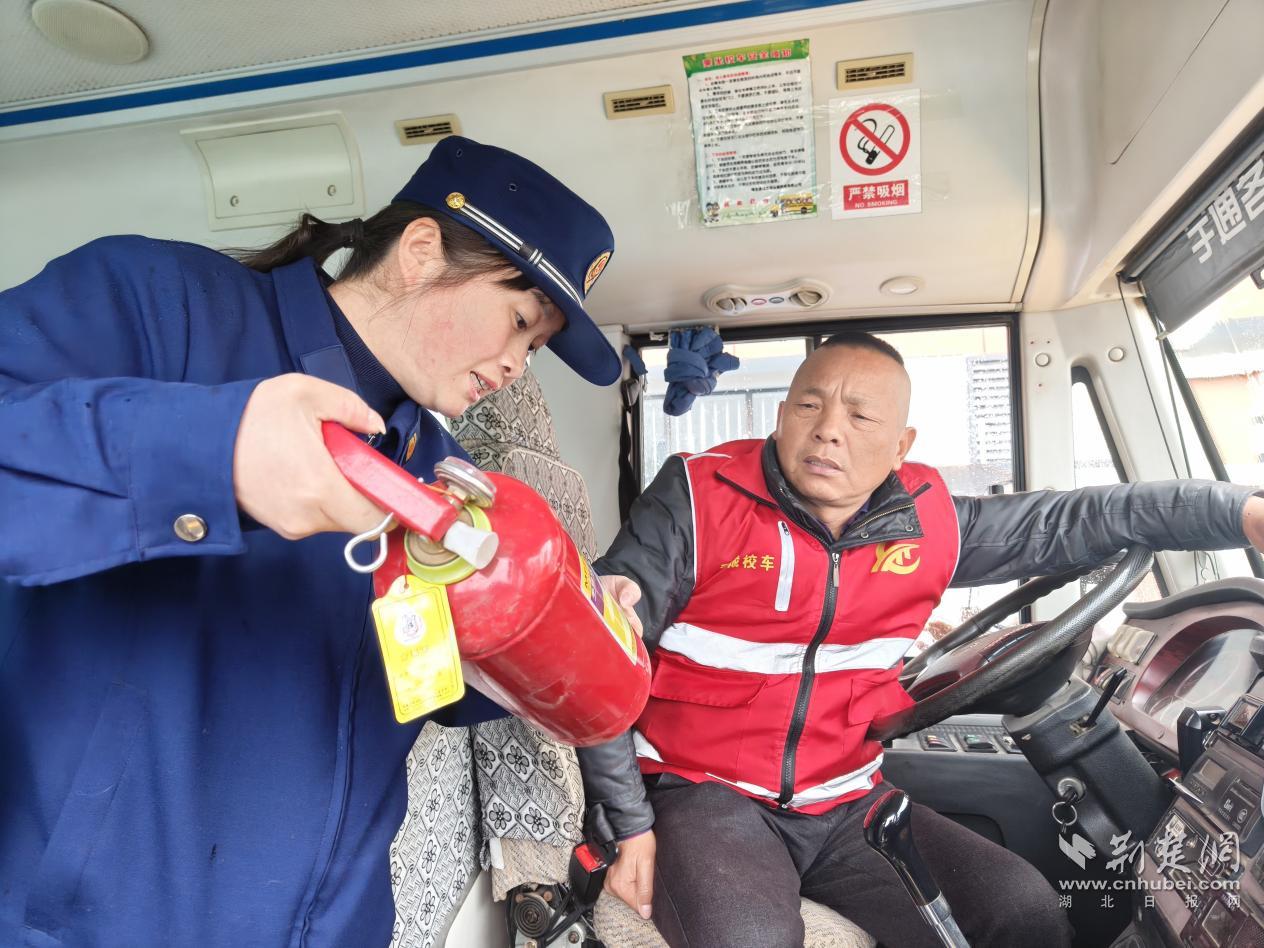 荆楚网(湖北日报网)讯(通讯员 朱燕林 邓瑶)为深刻汲取安徽淮南校车自燃的惨痛教训,进一步加强校车安全管理,提高师生安全意识和应急处置能力,保障师生安全,近日,咸宁市消防救援支队高新大队联合交警深入辖区实验外国语玉桂分校开展校车安全大检查和消防宣传活动。