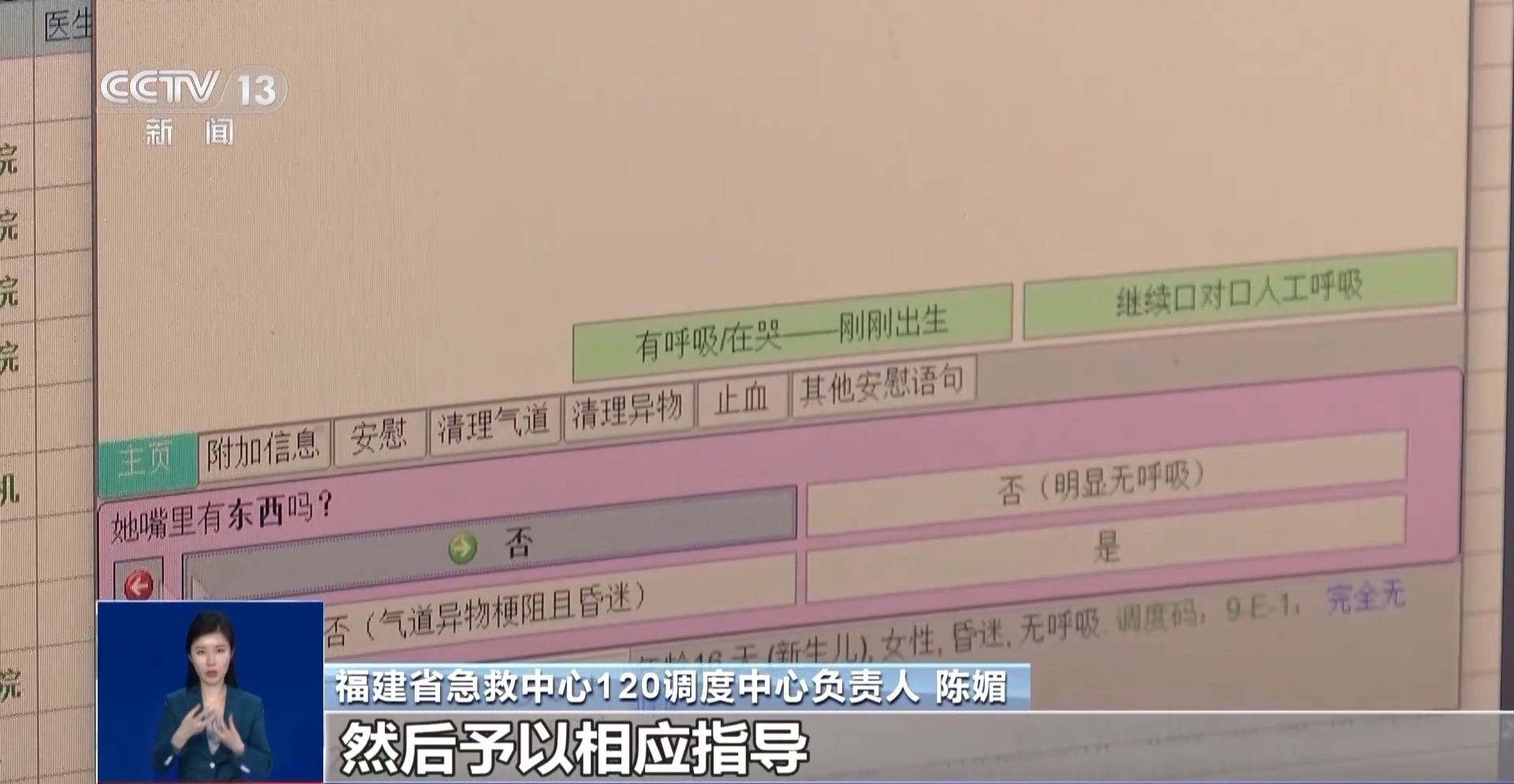 根据家属的描述,120调度员李如涛判断婴儿为气道异物梗阻,立即启动急救优先调度系统,并在电话里指导家属进行心肺复苏。