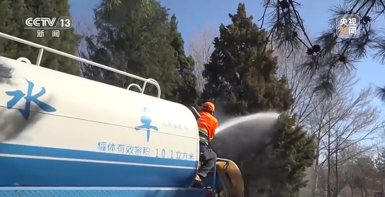 花粉爆发下,天坛公园里的花粉“捕手”也开始行动,他们主要捕获方式是喷水枪,靠水珠“逮捕”四处飞扬的花粉。