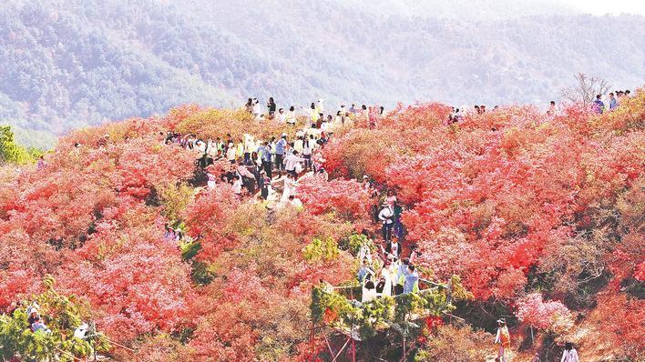 3月22日,游客在武汉市黄陂区云雾山景区赏花游览。当日,2025木兰云雾山杜鹃花嘉年华活动在云雾山景区拉开帷幕。(湖北日报全媒记者 黄磊 通讯员 黄宣 摄)