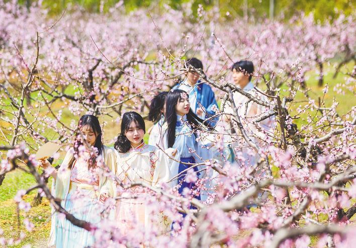 3月22日,武汉园博园汉口里花朝嘉年华活动在樱花树下启幕。3万余游客及汉服爱好者在武汉园博园踏青赏花,品味传统文化。