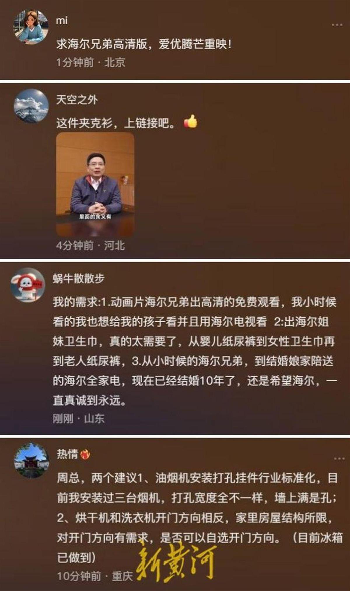 对准备“在玩梗的网友中选择代言人”一事,周云杰认为,只要是热爱海尔、对海尔产品有体验、跟网友有很好互动的,都可以成为海尔代言人。