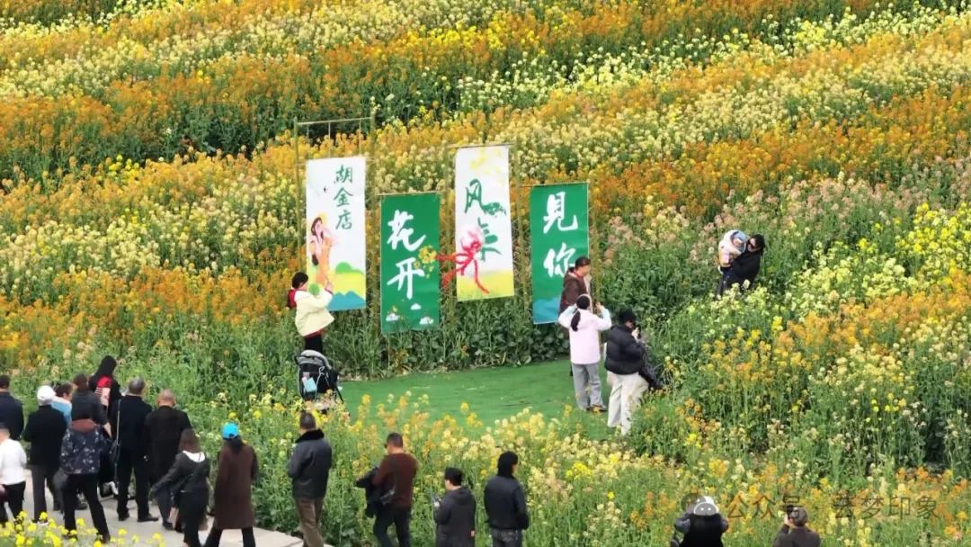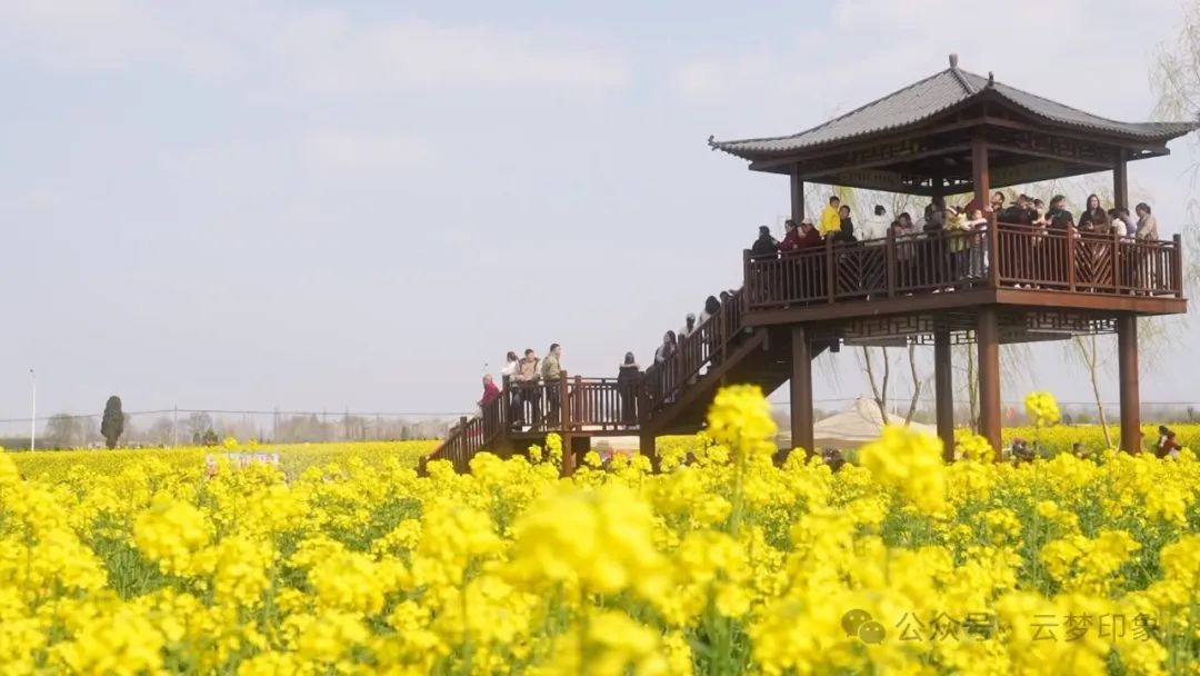 在云梦县胡金店镇盛砦村,连片油菜花海迎来最佳观赏期。黄、橙、白三色花朵交织如锦,游人在花田间拍照打卡,涌动的人潮与绚烂的花海共同勾勒出乡村振兴新图景。
