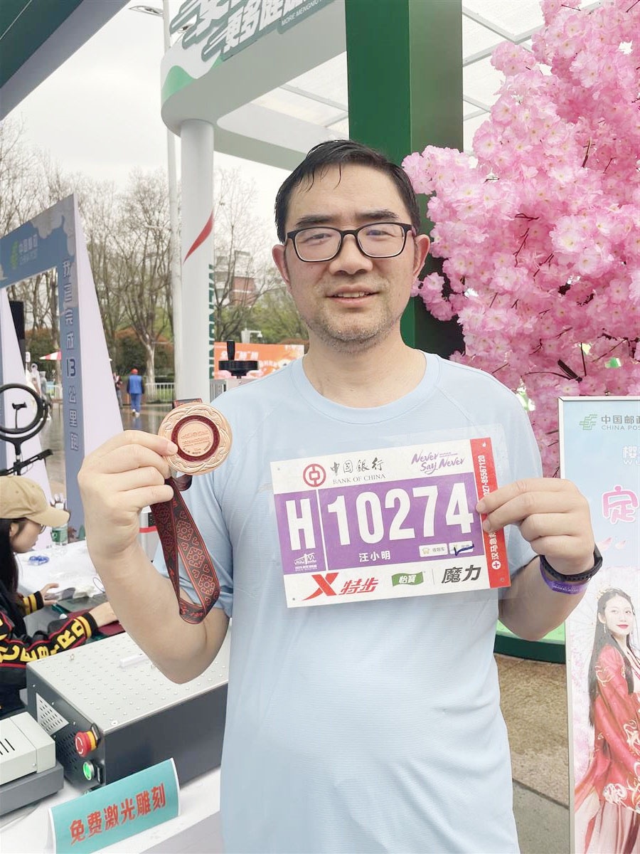 汉马奖牌刻上了姓名和编号