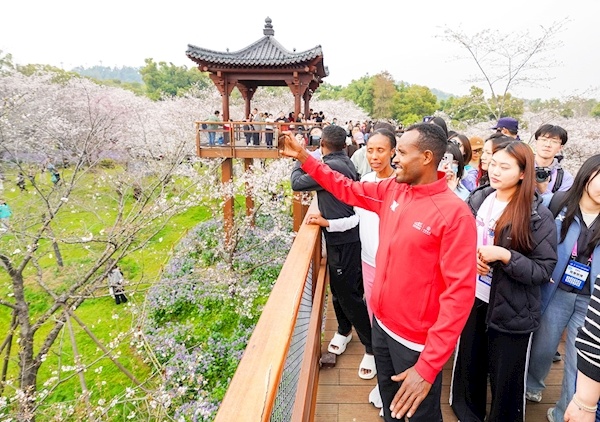汉马冠军选手参观东湖樱花园