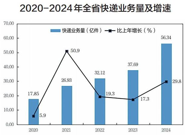 注:2024年部分邮政快递企业调整快递业务口径,快递业务增速按可比口径计算。