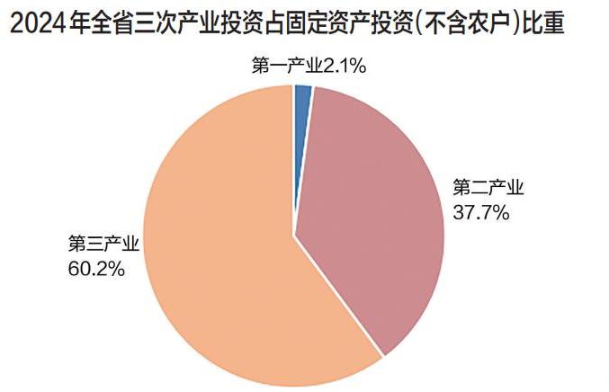 全年全省完成固定资产投资(不含农户) 比上年增长6.5%。按产业划分,一、二、三次产业投资分别增长2.8%、14.7%、2.1%。分领域看,工业投资、基础设施投资、房地产开发投资增速分别为14.7%、9.8%、-5.9%。全省创新驱动发展成效显现,新动能新优势加快塑造,高技术产业投资增长16.7%,其中高技术制造业投资增长15.4%,高技术服务业投资增长20.5%。补短板强功能建设加快推进,铁路运输业投资、水利管理业投资分别增长23.4%、60.9%。