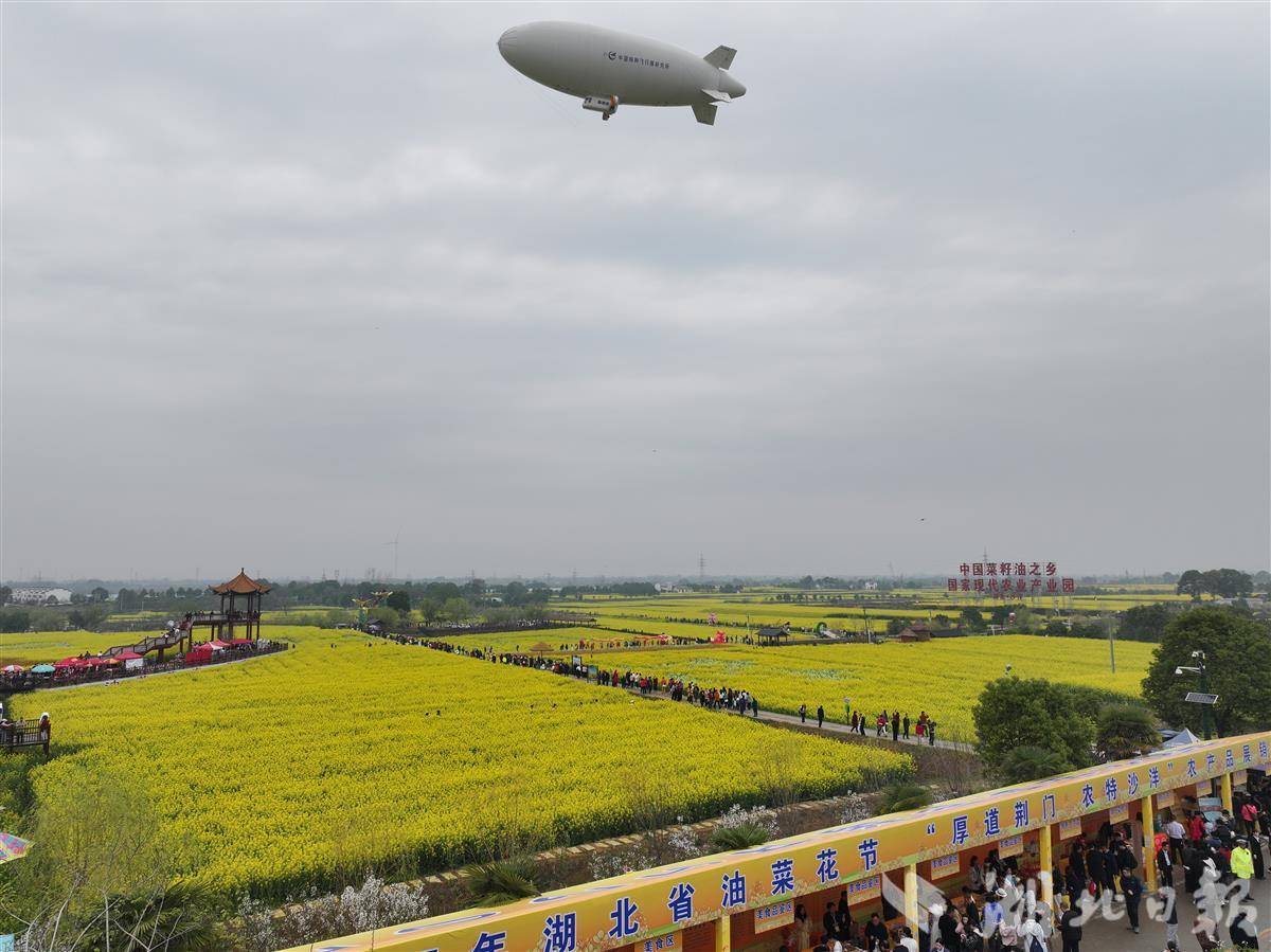 与往年相比,今年油菜花节亮点纷呈。荆门研发的祥云AS700载人飞艇从空中俯瞰花潮,荆门制造的长城坦克汽车穿越花海,让游客立体感受油菜花海的壮美。此外,当地还举行万人健步行、花卉苗木展、钓鱼大赛等活动。