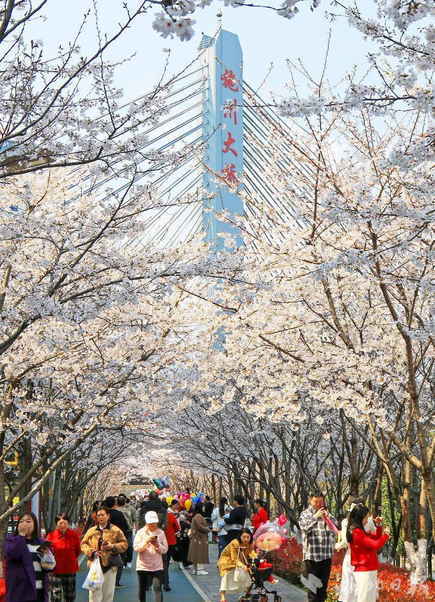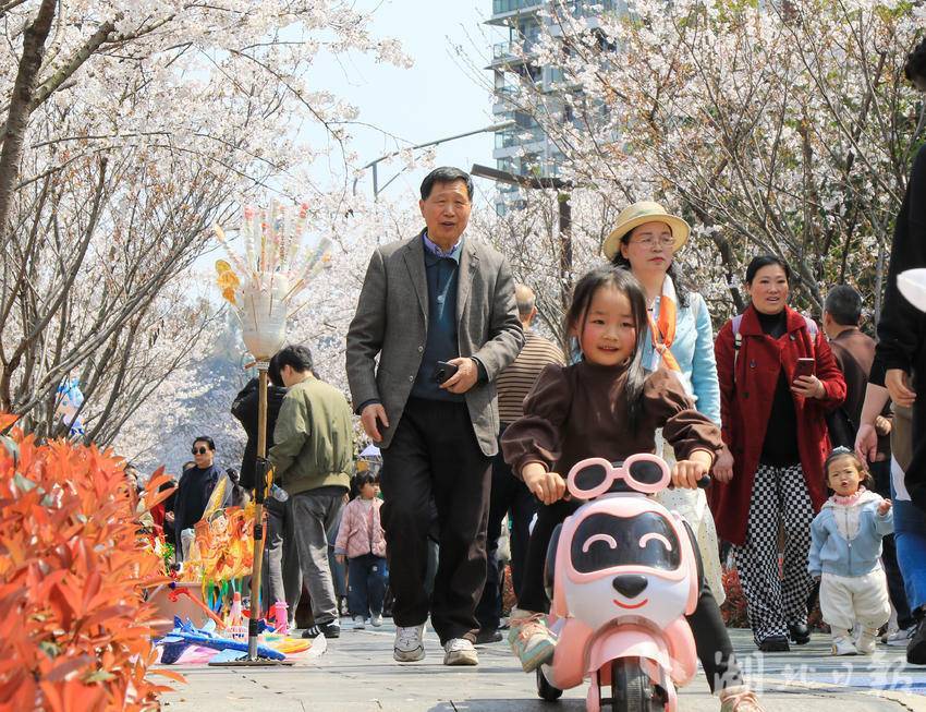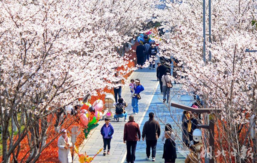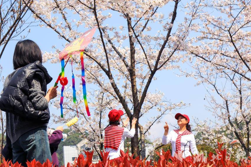 仲春时节,阳光明媚,恩施市城区清江河畔的樱花陆续绽放,吸引众多市民和游客前来踏青赏樱,休闲游玩,尽览春日好光景。