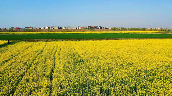 湛蓝天空下,花海与河水相互依偎,相得益彰,共同勾勒出一幅如诗如画的春日绝美画卷。远处,错落有致的村舍点缀在这片美景之中,袅袅炊烟升起,给这幅画卷添了几分烟火气息。漫步在田埂间,花香弥漫,沁人心脾,让人心旷神怡。