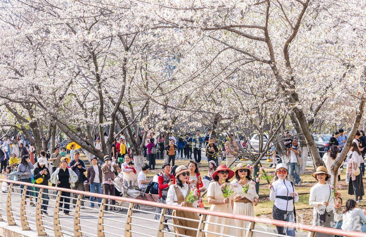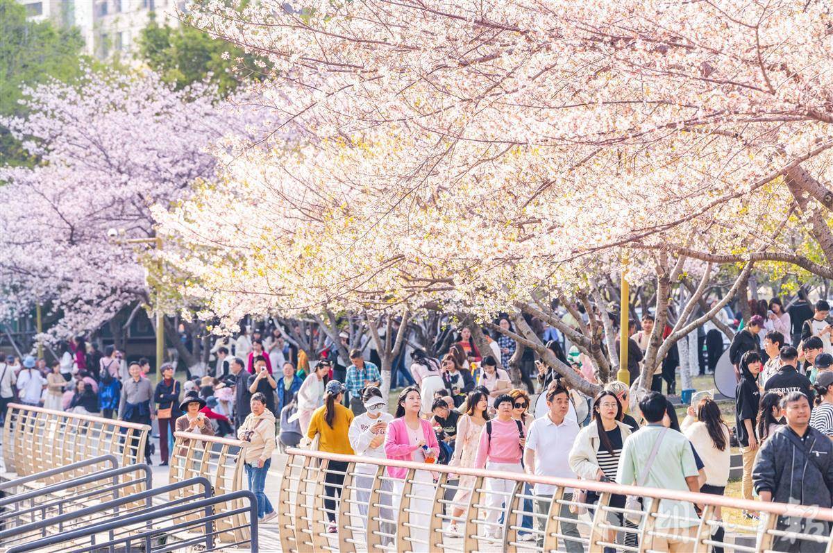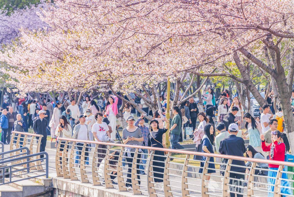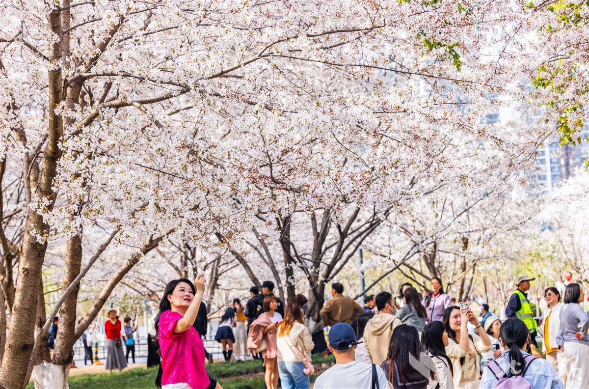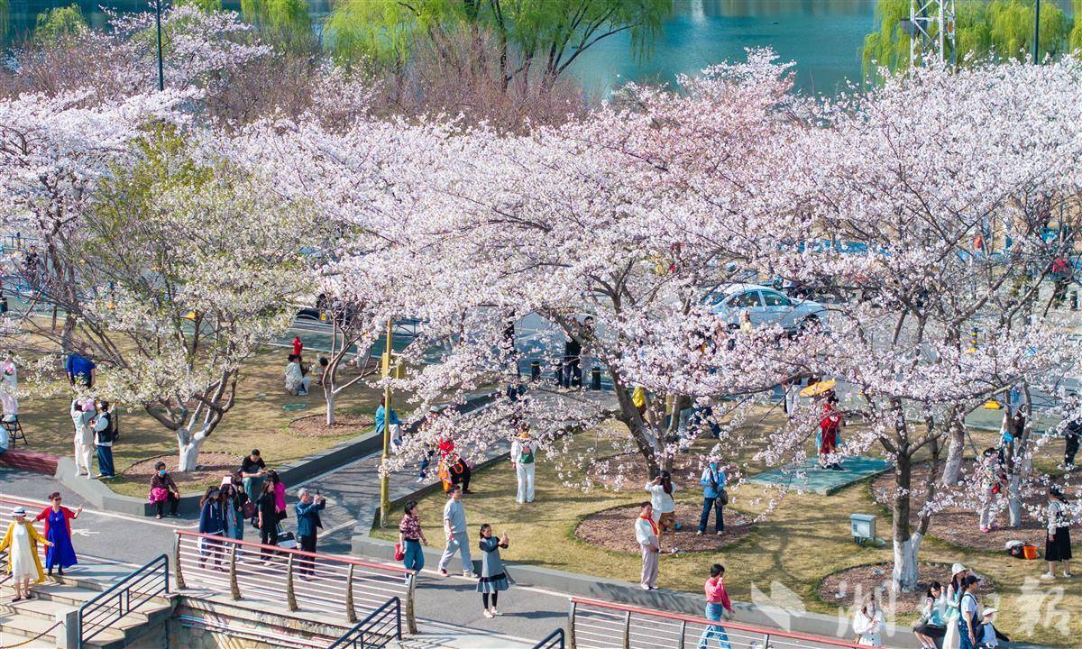 3月24日,武汉西北湖公园樱花进入盛花期,如云似霞,吸引众多游客拍照打卡。目前,武汉樱花进入盛花期,全市公园景区和道路共有赏樱点200余处。(湖北日报全媒记者 薛婷 摄)