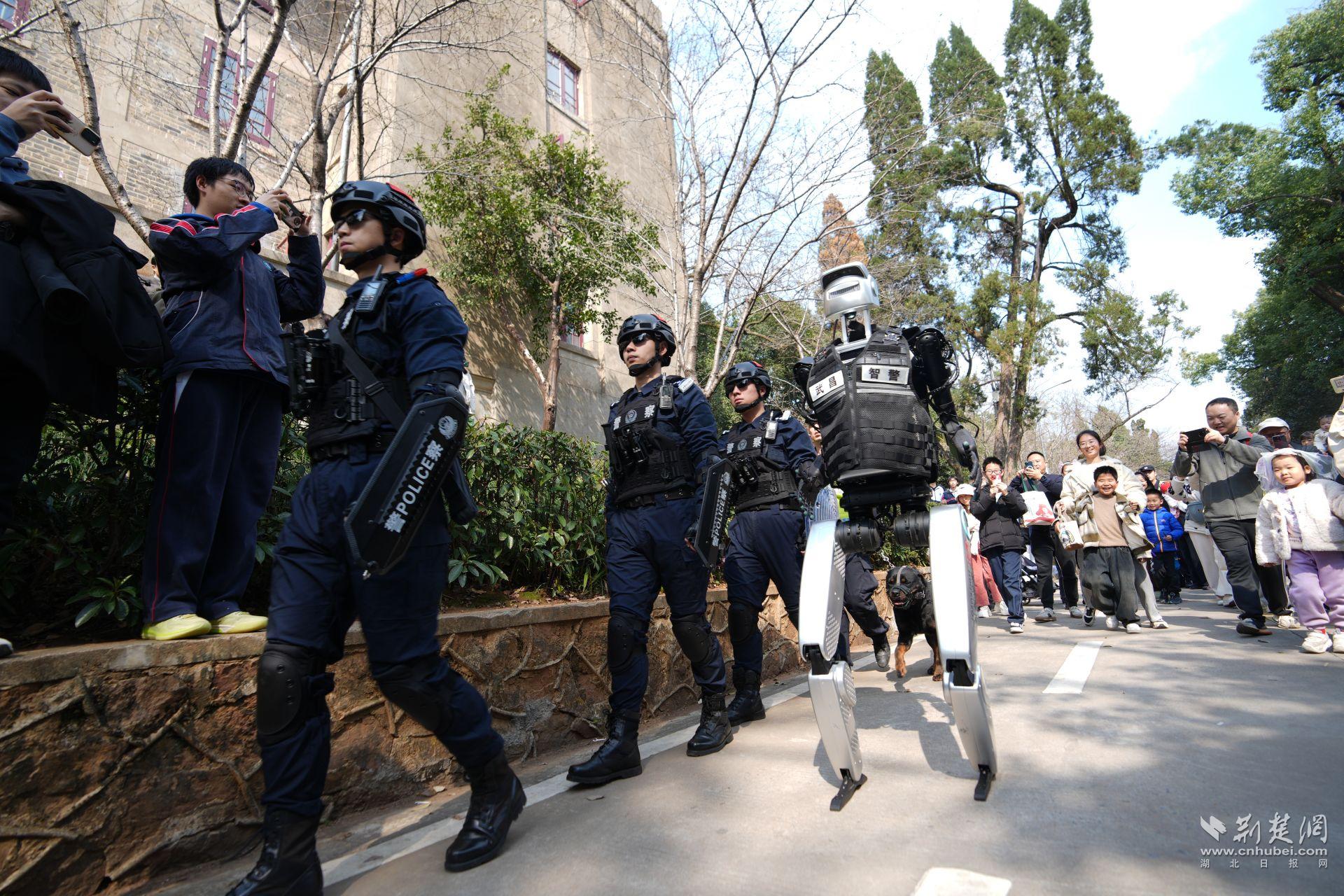 荆楚网(湖北日报网)讯(记者 白云 通讯员 武龚萱)无人机在低空巡航,实时监控人流密集区域;机器警犬穿梭于游客之间,协助民警巡逻;人形机器人与特警并肩作战,成为游客瞩目的焦点……三月的武汉,随着赏樱季进入高峰,吸引了全国乃至世界各地的游客慕名而来。从空中到地面,从人流疏导到交通管理,武汉公安以科技赋能,在各大景点筑起一道坚实的智慧安防屏障,为游客打造平安、有序的赏樱环境。