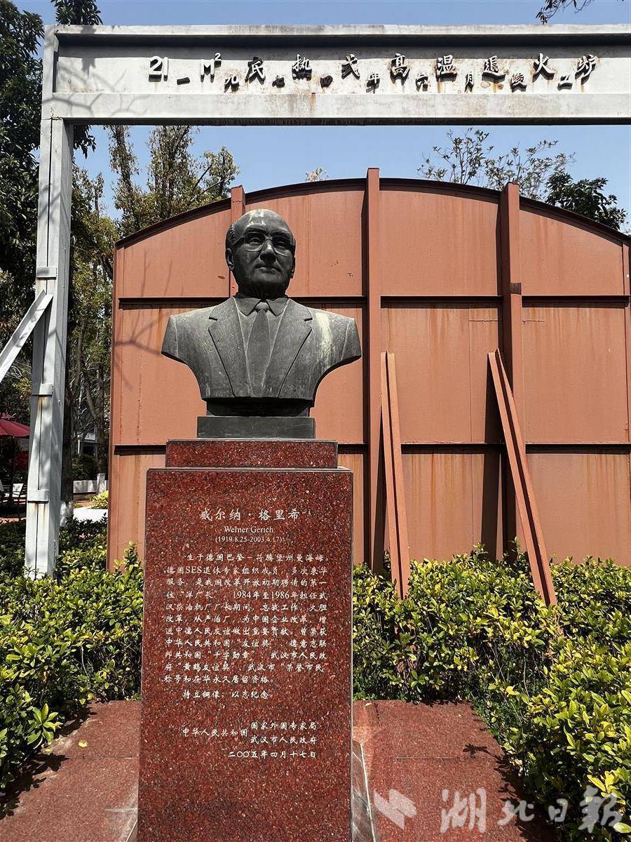 阳光照射下,铜像熠熠生辉。格里希,这位目光坚毅的老人,仿佛下一秒便要俯身检查生产线,又仿佛一直平静地见证着武汉这座城市的开放与变迁。