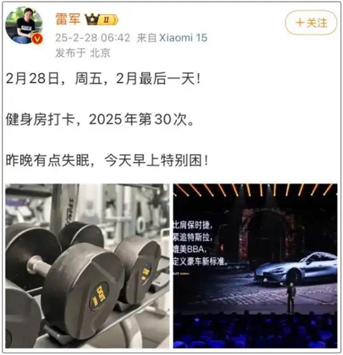 雷军发布健身照(图片来源:雷军个人账号截图)