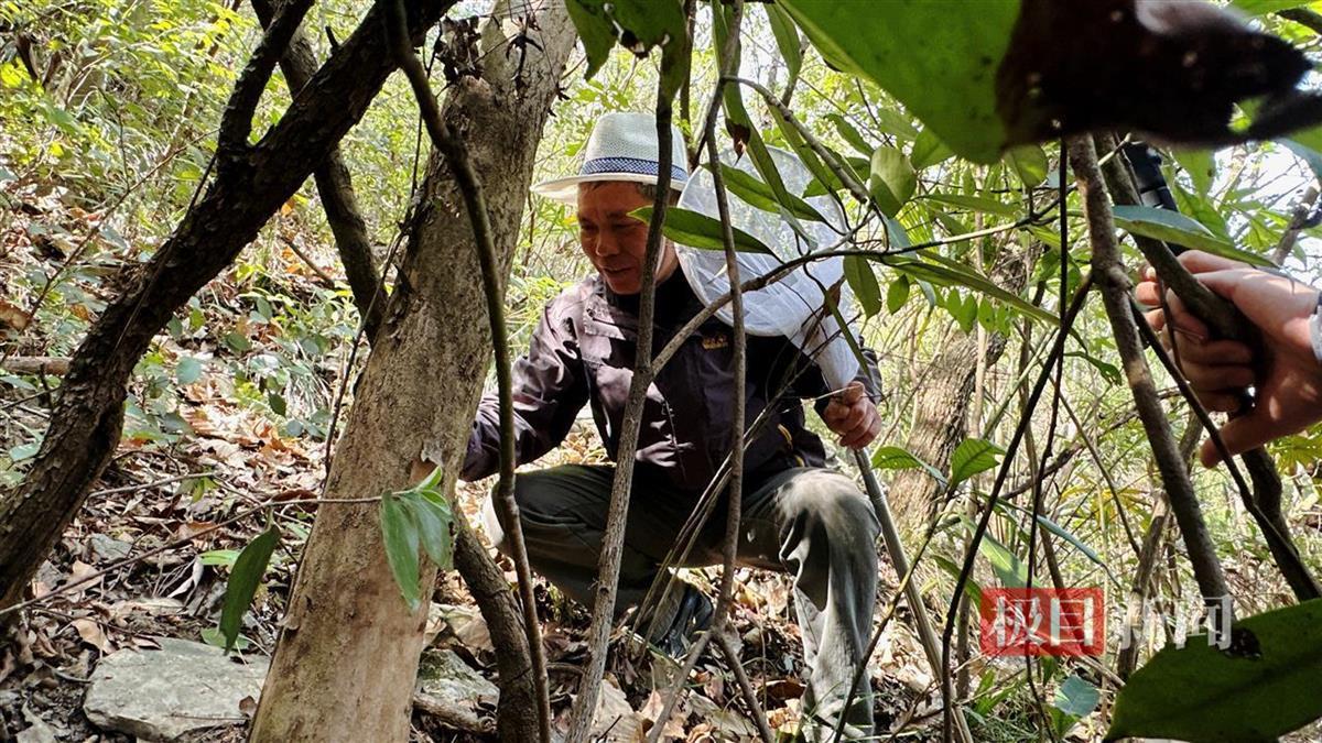 当天,覃学柱组织32名志愿者,在山林里巡查细辛的生长情况,希望能发现中华虎凤蝶的踪迹。遗憾的是,虽然细辛随处可见,但因为今年气温回升偏晚,暂时没看到中华虎凤蝶的身影。