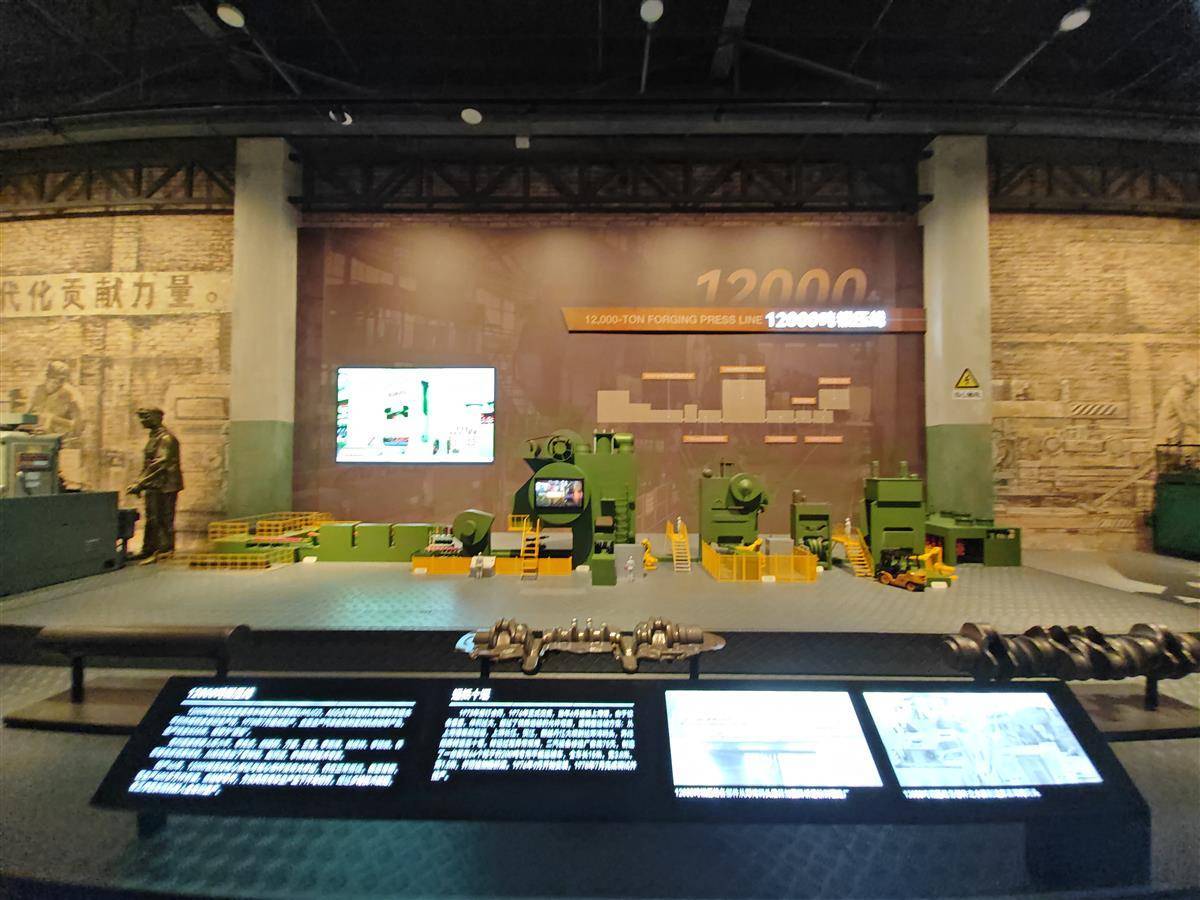 半吨黄金有多大体积呢?馆内展示了一个用半吨黄金换回的国宝线——12000吨锻压线的模型。这套设备是1976年从德国进口的,是当时世界上制造的第一台万吨锻压机,购买这套设备当时用了半吨黄金。
