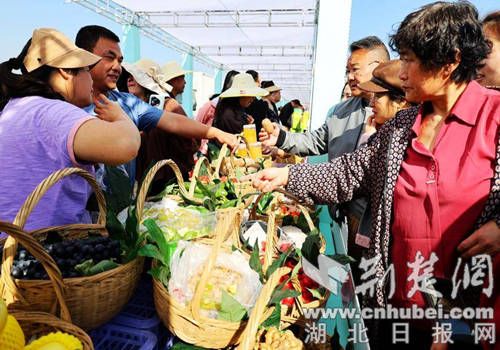 活动现场,该市还精心设置了30余个特色展位,来自130多家企业的800多个系列的农文特旅产品汇聚一堂。其中,老河口“翔鹤楼”区域公用品牌携特色农产品、手工艺品亮相,展区创新采用“文化讲解+实物品鉴”的展示方式,让游客深入了解产品背后的文化故事,吸引了不少游客下单,把特色好物带回家,进一步带动了当地特色农文旅产品的销售与推广。