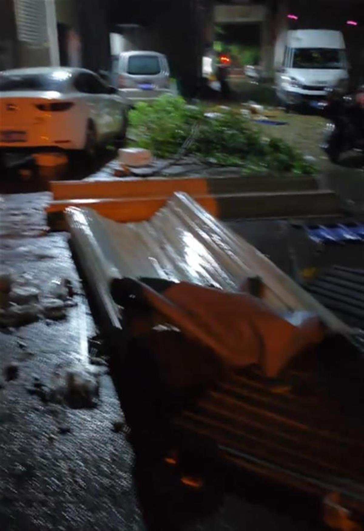 长沙县金鹰机电大市场附近的一名商家告诉记者,26日晚,自家的卷闸门被吹跑了有几米远,目前还没来得及维修。长沙县另一位商户告诉极目新闻记者,26日晚,他家的三个数米长的临时帐篷被吹毁,“被吹跑了有十来米远,篷子里面的东西被吹得乱七八糟。”
