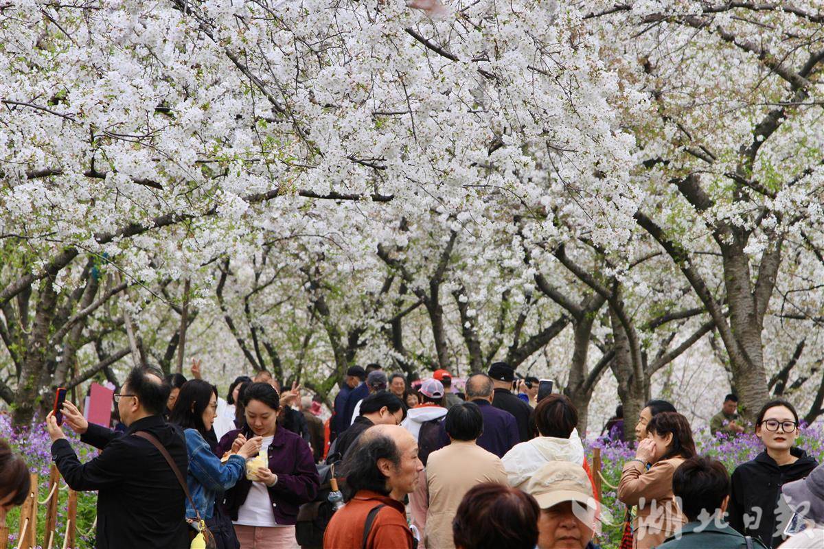 目前园内大面积种植的染井吉野、大岛樱、八重红枝垂、雨晴垂枝等中樱品种全部盛放,宣告这场春日盛宴迎来高潮,赏花游客可把握住本周末的盛花期。园内晚樱品种也已陆续绽放,包括罕见的绿樱品种“郁金”,远看似翠叶覆枝,近观方觉满树繁花,景观十分奇特。