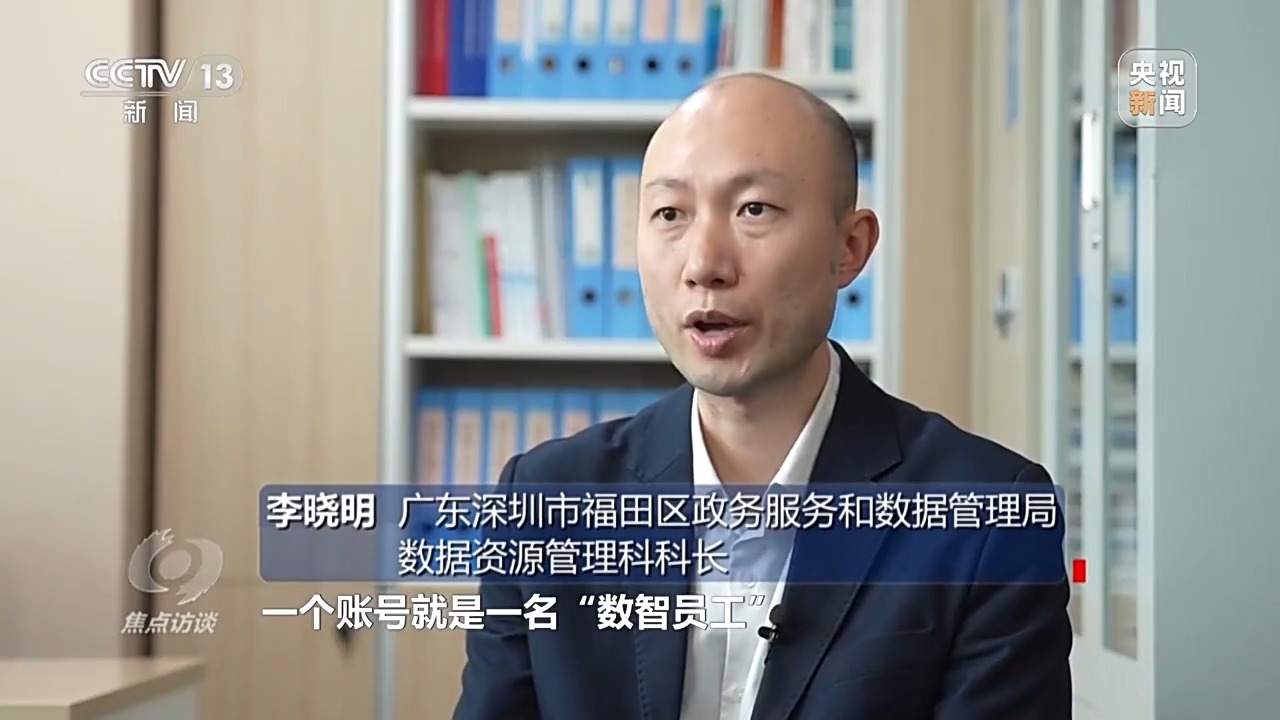广东深圳市福田区政务服务和数据管理局数据资源管理科科长 李晓明:70个“数智员工”实际上是70个账号,一个账号就是一名“数智员工”,它都要指定一名或多名在编人员做监护人。一年多,打磨出来了240个场景,相当于“数智员工”已经累计有240个技能了。
