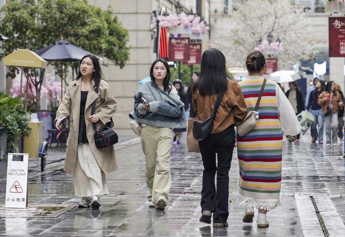 武昌汉街,一女子把外套反穿抵挡寒风 楚天都市报极目新闻记者李辉摄