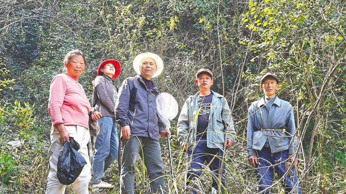 “不要捕捉,不要触碰。”61岁的覃学柱简单交代了几句后,大家便兵分三路上山。