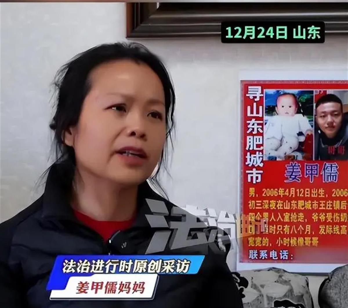 据姜甲儒母亲乔守芬介绍,2006年农历腊月初三,泰安肥城市王庄镇,8个月大的姜甲儒住在爷爷奶奶家。当天凌晨1点多,四名男子突然闯进屋,先是把姜甲儒爷爷拖到厨房殴打,还用脚踩住老人的脸让他动弹不得。奶奶想喊人,一名歹徒用钢筋顶着她的喉咙说:“别动,动就让你死!”