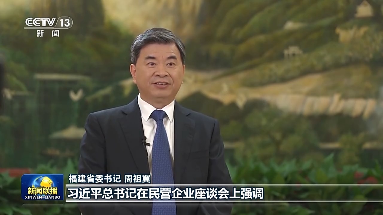 作为民营经济大省,福建正全力推进新时代民营经济强省战略,下一步如何支持引导民营经济打造新优势、塑造新动能?今天的《促进民营经济高质量发展·权威访谈》播出总台记者对福建省委书记周祖翼的专访。