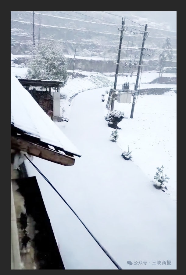 3月27日,湖北气温骤降。当夜,宜昌多地飘起漫天雪花。秭归县杨林桥镇白鹤洞村高山地区被积雪覆盖,当地居民说“比冬天的雪还大”。通讯员雷明双摄