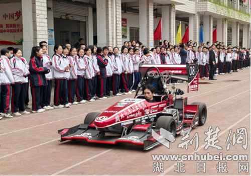 在极速赛车场展区,由湖北汽车工业学院师生带来的F1科创赛车,带领学生们感受自制赛车的速度与激情。