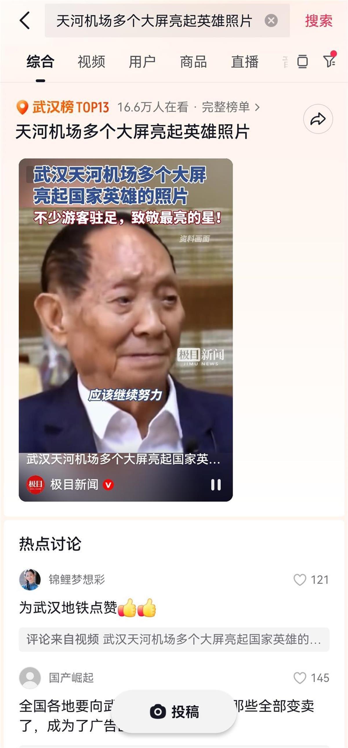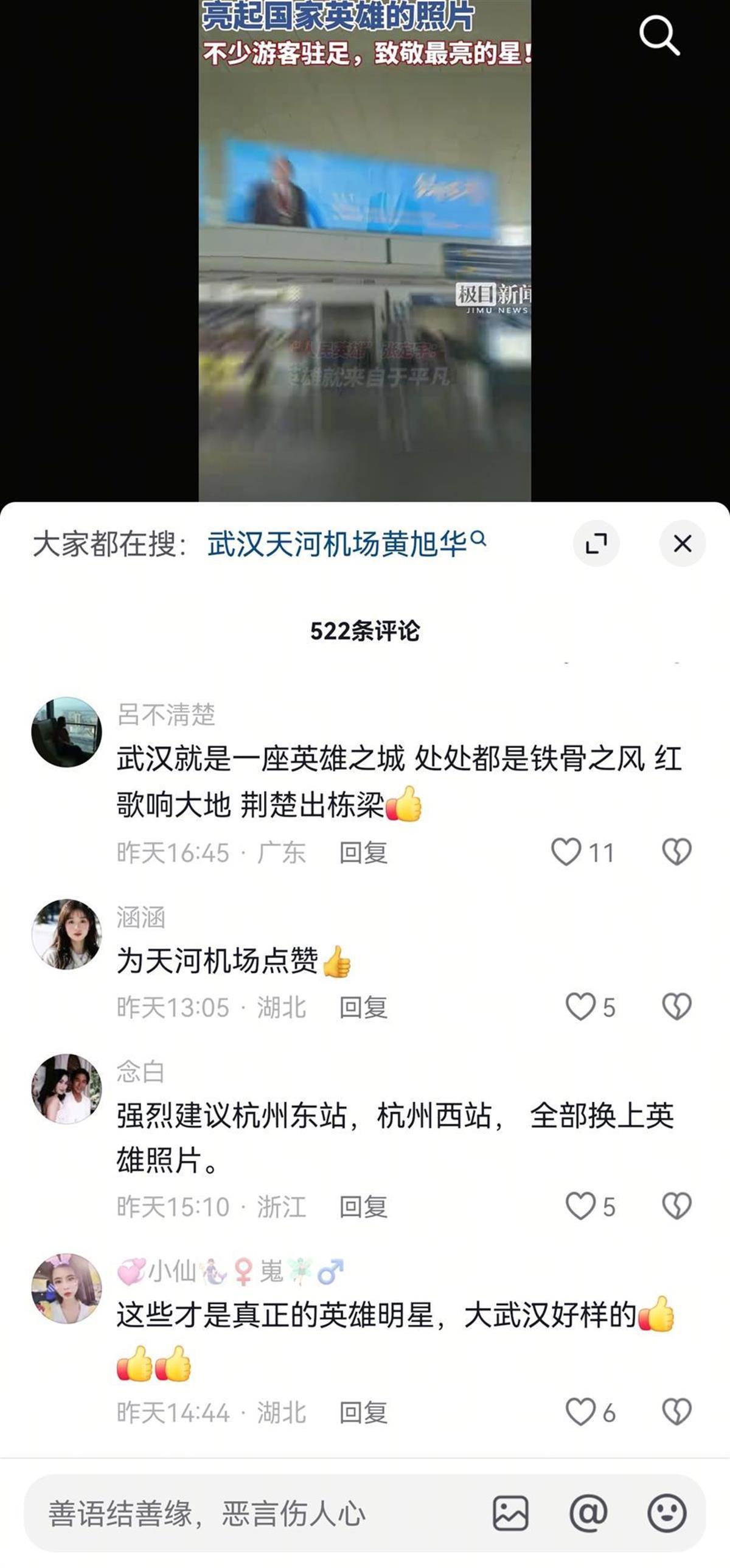 相关链接:极目锐评|武汉天河机场亮起国家英雄照片,英雄站立的地方一定会有最亮的光