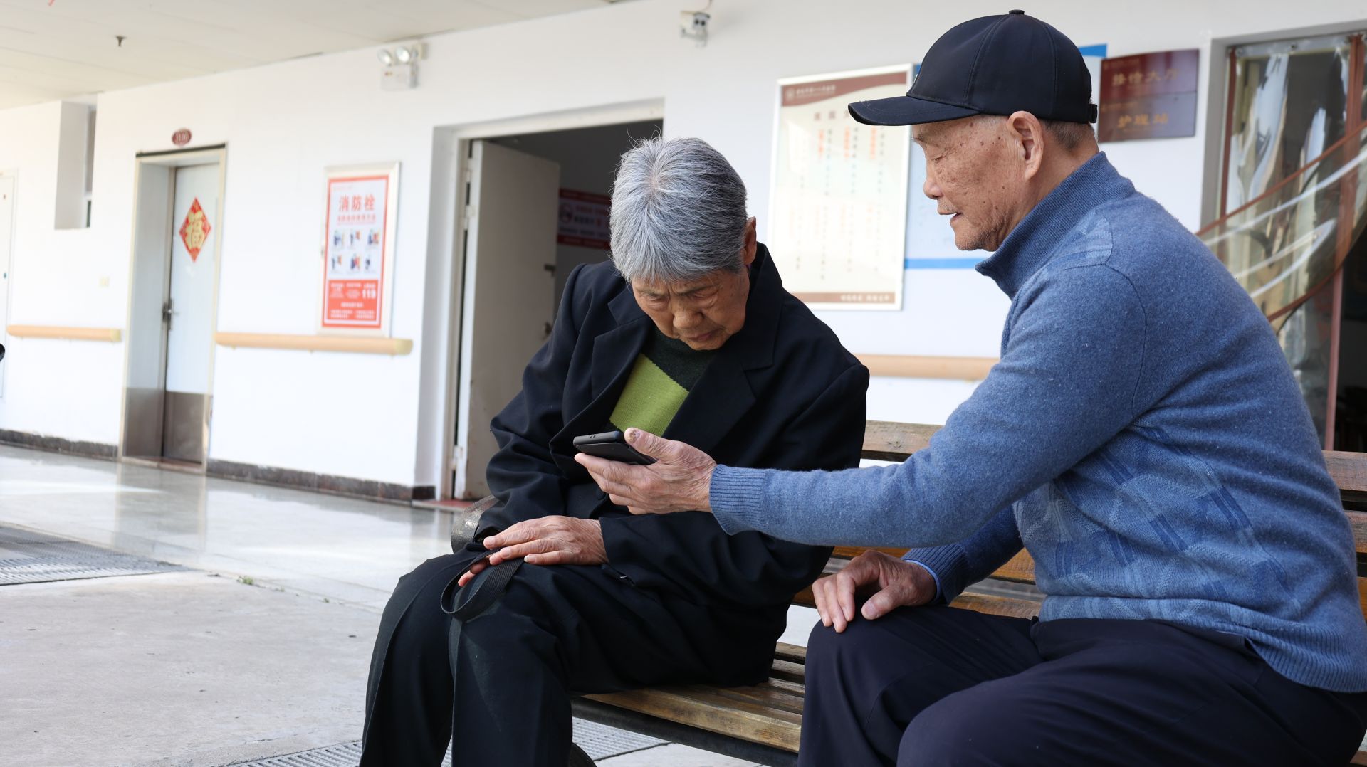 童爷爷给护理院其他老人分享自己拍摄的视频。(舒俊杰 摄)