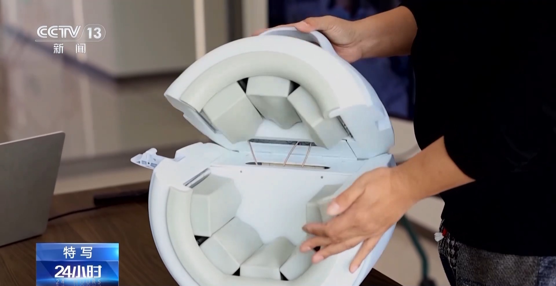 雄安新区安影科技联合创始人 张泽群:这是我们的微波成像单元,它通过发射电磁信号,对我们颅脑的组织进行一个穿透和检测。