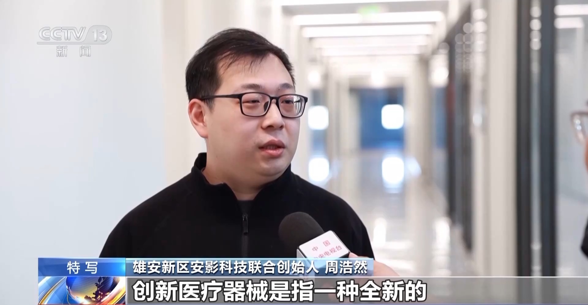 雄安新区安影科技联合创始人 周浩然:它属于创新医疗器械。创新医疗器械是指一种全新的、从来没有应用过在医疗领域的技术,产生了一个产品应用在了医疗领域。我们团队在全球范围内属于一个齐头并进的状态,然后在算法上我们甚至还有一定程度上的领先。