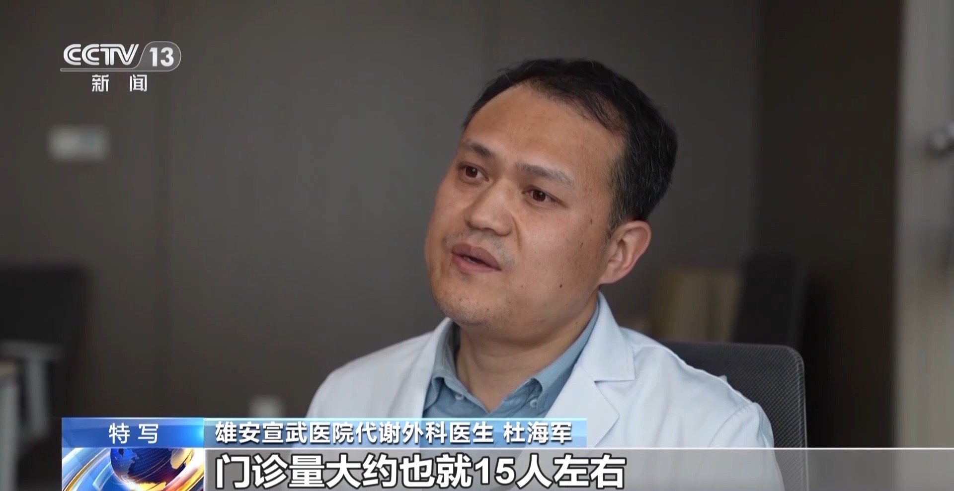 雄安宣武医院代谢外科医生 杜海军:我们去年刚开诊的时候,门诊量大约也就15人左右,现在每天都能挂到25个病人,说明病人是逐步地认可你这家医院。