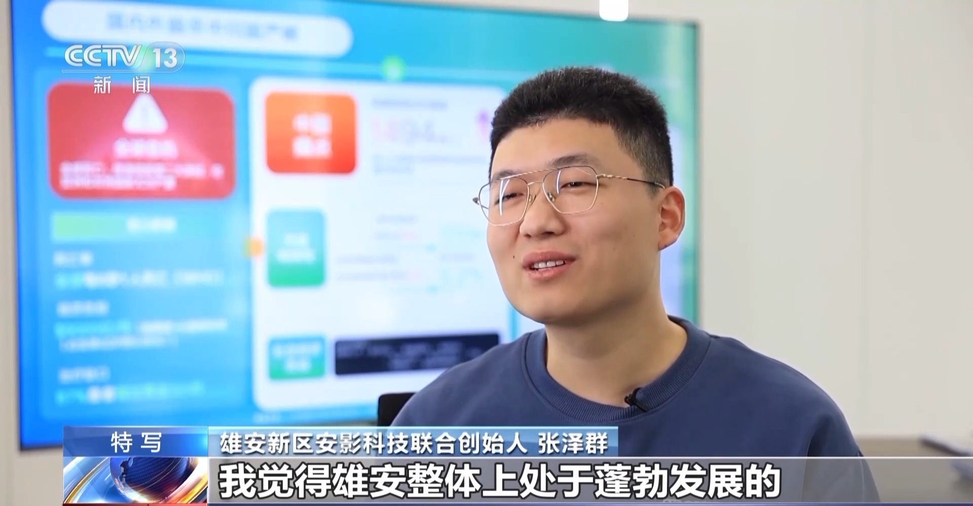 雄安新区安影科技联合创始人 张泽群:我认为无论是雄安的城市建设、政策、人员等等各方面都非常到位,然后我也认为雄安是比较适合我们现在的一个阶段,我们也是看中了这点,就是因为雄安也会给我们提供更多的政策支持,这是我们在其他任何一个新区城市比不了的。从0到1的地方干从0到1的事,我个人认为这件事是非常有挑战的,但是我非常乐于去证明自己在这件事上的一个能力。