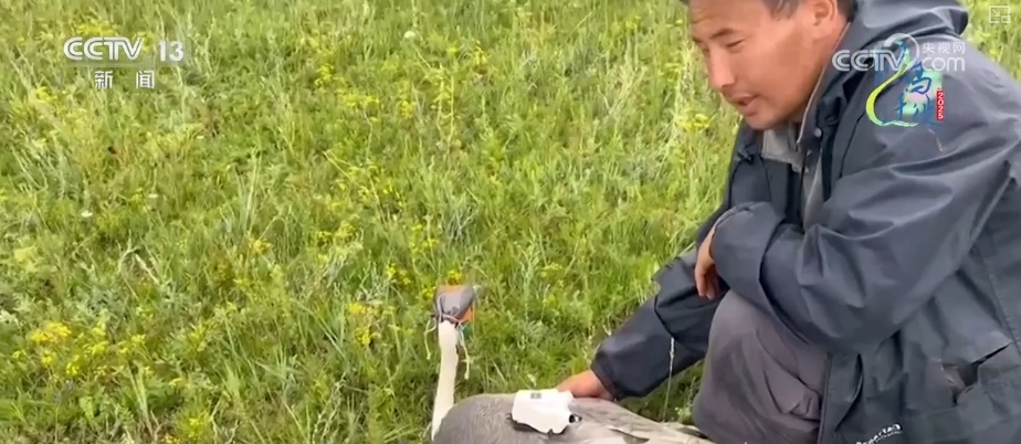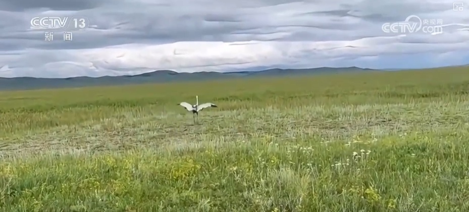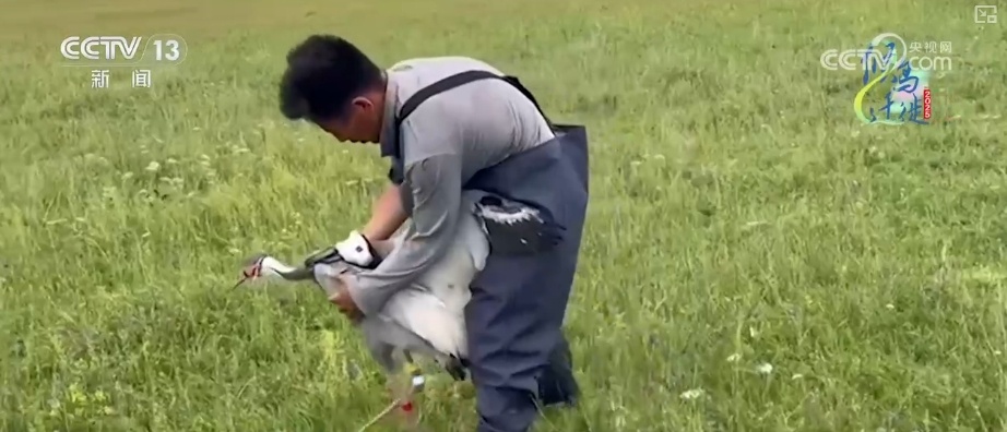 2024年7月,北京林业大学东亚-澳大利西亚候鸟迁徙研究团队,到蒙古国白枕鹤繁殖地考察,并给其中一只白枕鹤佩戴了带摄像头的北斗定位系统追踪器。