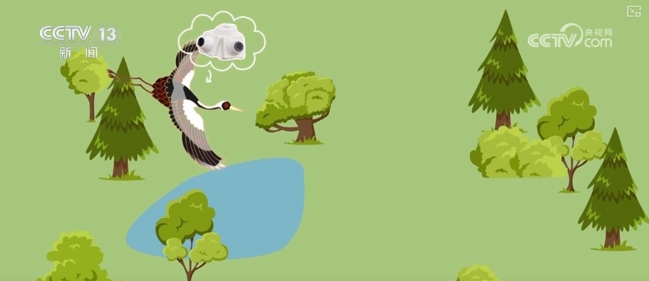 北京林业大学东亚-澳大利西亚候鸟迁徙研究中心副教授贾亦飞介绍,它其实比传统这种定位只能记录位置信息的功能,能够获得更多多媒体数据,尤其是照片。他们通过照片能够分析它的微生境,其实就是它站在什么地方,比如它喜欢水深多少,或者它周边的植被,包括它喜欢的开阔程度。是从白枕鹤“蒙蒙”的视角能够看到一些照片,包括它飞越一些自然景观,一些地貌的情况,能够分析出更多它实际生活的场景、情况。