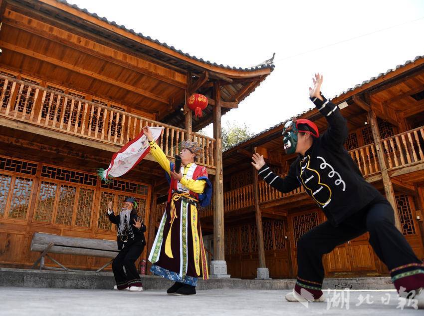 面具狰狞、服饰奇特、动作凝重,神秘的场景中,舞者附和着晦涩的唱词蹁跹起舞,动作几近原始——这就是入选国家级非物质文化遗产名录的恩施傩戏。