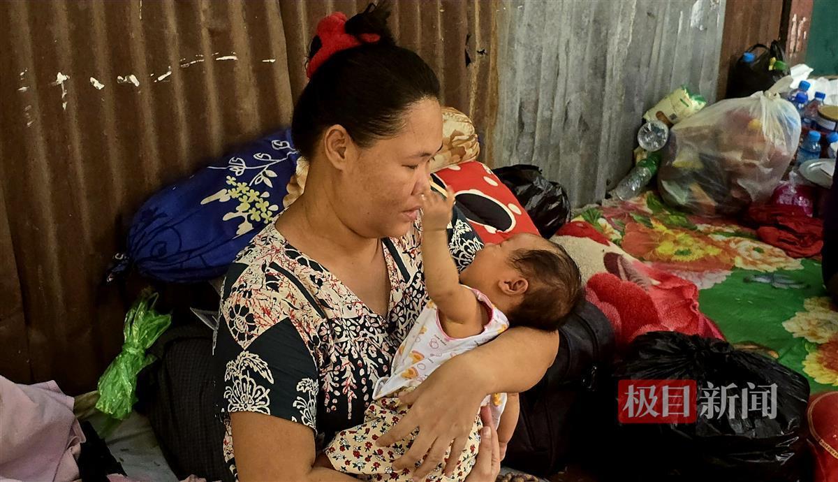 室内空间有限,更多的人直接在地面垫上席子,就地打地铺。整个寺庙的空地上,密密麻麻全是人,其中有很多老人和孩子,还有不少是被搂在怀里的婴儿。一位居民介绍,刚出生2个月的婴儿,这里多的是。