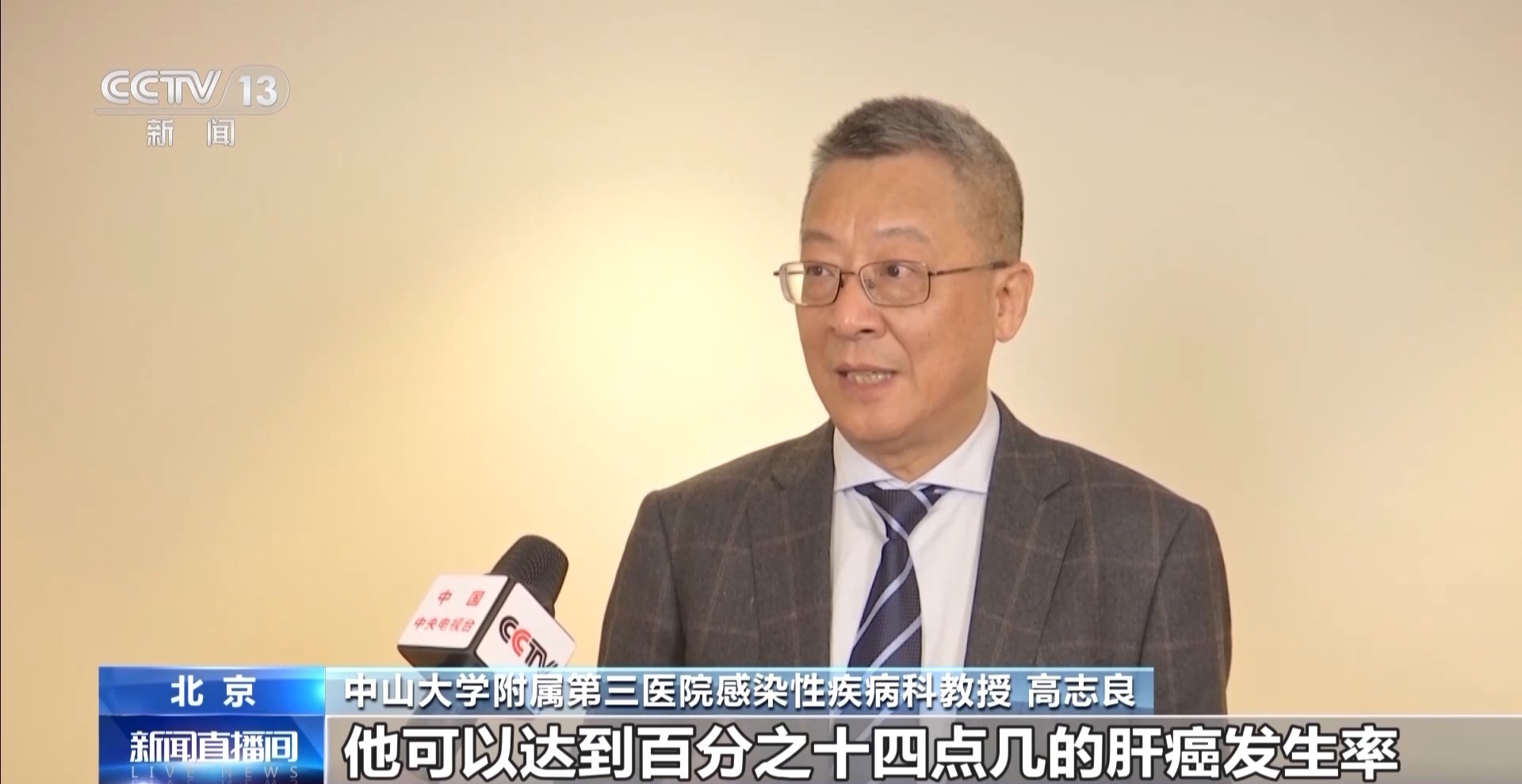 中山大学附属第三医院感染性疾病科教授 高志良:假如说一个乙肝病人他不去治疗,5年之内可以达到14%以上的肝癌发病率,假设到肝硬化了,他不治疗的话,可以达到30%左右的肝癌。我们追求临床治愈以后,大概5年之内只有1%的肝癌发生。