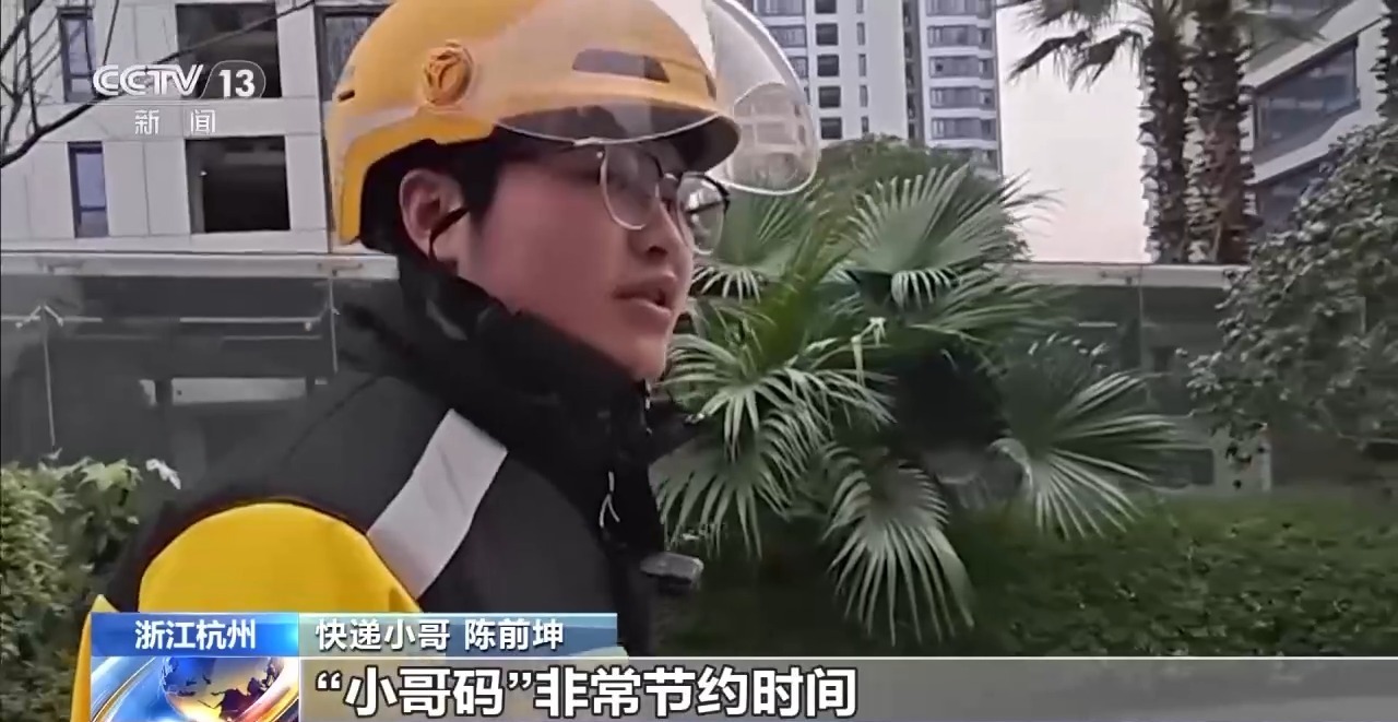 快递小哥 陈前坤:以前登记都非常麻烦,问各种业主的信息。“小哥码”非常节约时间,三十秒不到我就进小区了。