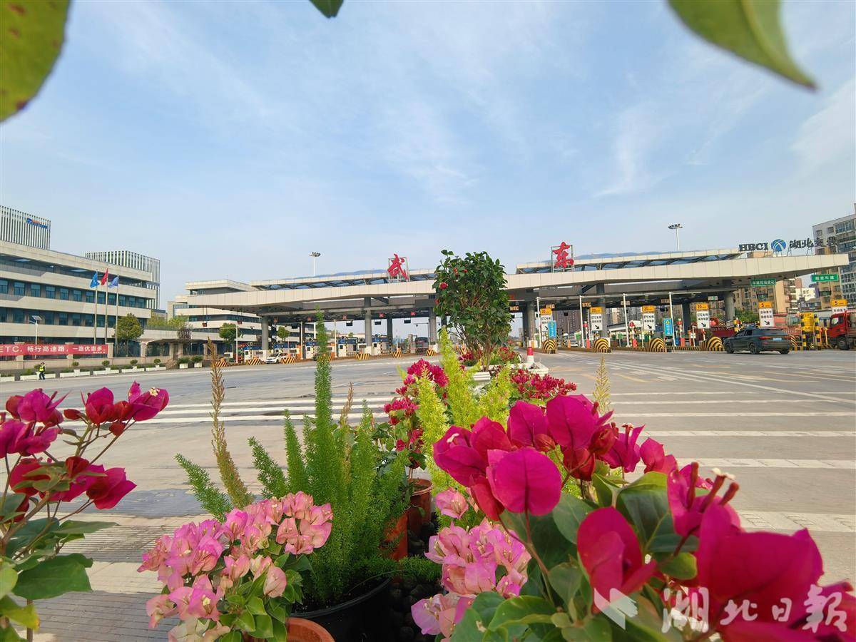 武汉西收费站还新增立体花箱,沿着车道分流岛次第布置,鲜花随风摇曳。“每个收费站都会定制‘妆容’,武东站的桂花寓意折桂平安,花湖机场站的三角梅象征热情迎客。”湖北交投运营集团相关负责人介绍,今年通过实施路域环境提升、站所靓化改造、服务区升级三大工程,目前已完成608公里示范路段路侧清理整治,推动10个收费站广场的亮化,完成武汉西、巨龙、新桥等4个互通景观绿化建设。