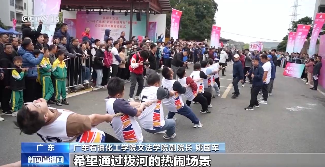 今年,百县拔河比赛正在广东茂名举行。来自各乡镇街道的参赛队伍在绳索两端角力,全力以赴、奋勇争先,吸引众多村民前来加油助威。